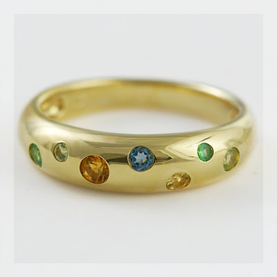 ※ホワイトゴールドではお作りできません。【送料無料】 マルチカラー7石の宝石ドッツリング「オリーブ」 価格: 38,640円 レビュー評価: 5.0 レビュー数:4 リング 【 仕様 】 ■本体素材[1]K18イエローゴールド製(サンプル=本体) [2]ペリドット(約)1.5mm×1石 [3]グリーンガーネット(約)1.5mm×1石 [4]薄いグリーンガーネット(約)2.0mm×1石 [5]カナリートルマリン(約)2.0mm×1石 [6]ペリドット(約)2.0mm×1石 [7]ロンドンブルートパーズ(約)2.0mm×1石 [8]シトリン(約)2.5mm×1石 ■サイズリング:直径:(約)16.3mm×厚:最小(約)1.5mm-最大(約)2.8mm×幅:最小(約)2.8mm-最大(約)5.2mm 重量:(約)4.08g ※サイズのお直しは±1までとさせていた Supported by 楽天ウェブサービス |